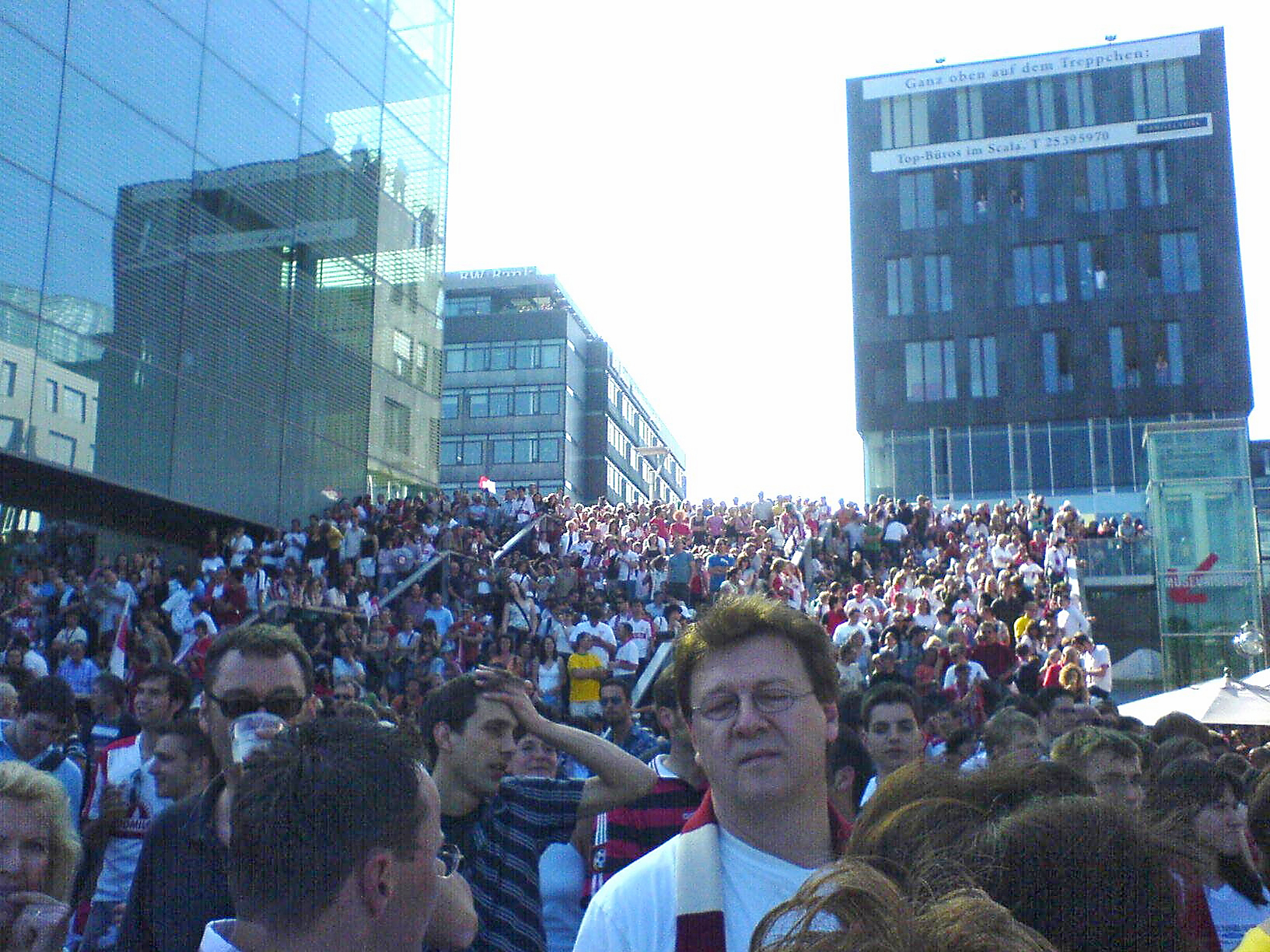Immer wieder fährt ein Zug, immer wieder ist er voll. Selbst ein Platz auf den Schlossplatztreppen zu ergattern ist ziemlich schwierig. Einen in der TV-Bar so gut wie ausgeschlossen. Tausende fahren direkt wieder nach Hause, um das Spiel gegen Energie Cottbus wenigstens an Sindelfinger oder Böblinger Kneipenfernsehern anzuschauen. Viele davon aber nur, um nach Hitzlspergers Hammer und Khediras Köpfchen sofort wieder ans Gleis zu kommen und auf den Zug aufzuspringen.