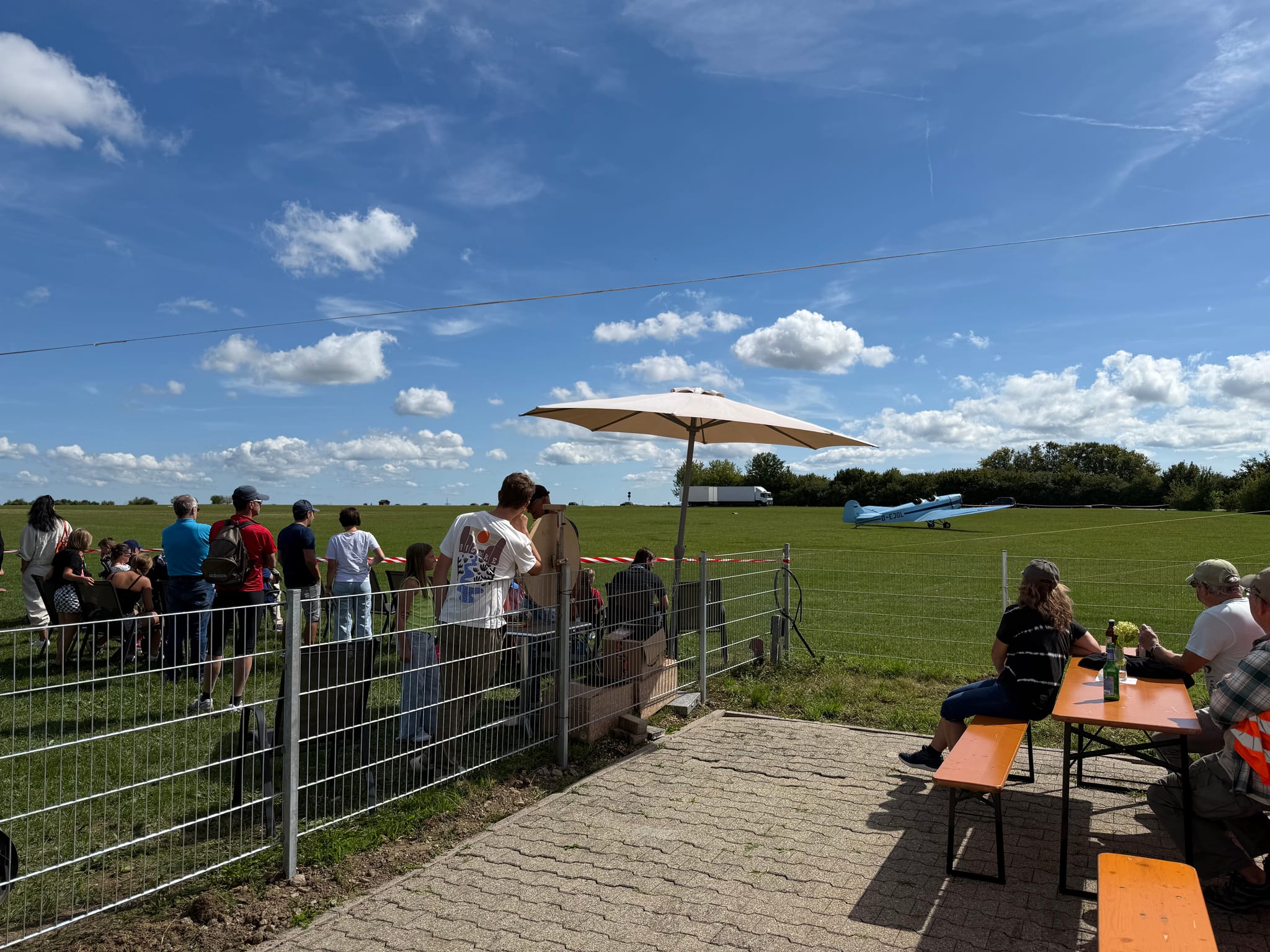 Ein Höhepunkt des Tages waren Starts der D-EJOL, einer Klemm KL 25 von 1934. Das drittälteste in Deutschland zugelassene Flugzeug feierte seinen 91. Geburtstag. „So ein Flugzeug noch fliegen zu sehen, ist ein Geschenk“, sagte ein Gast ehrfürchtig.