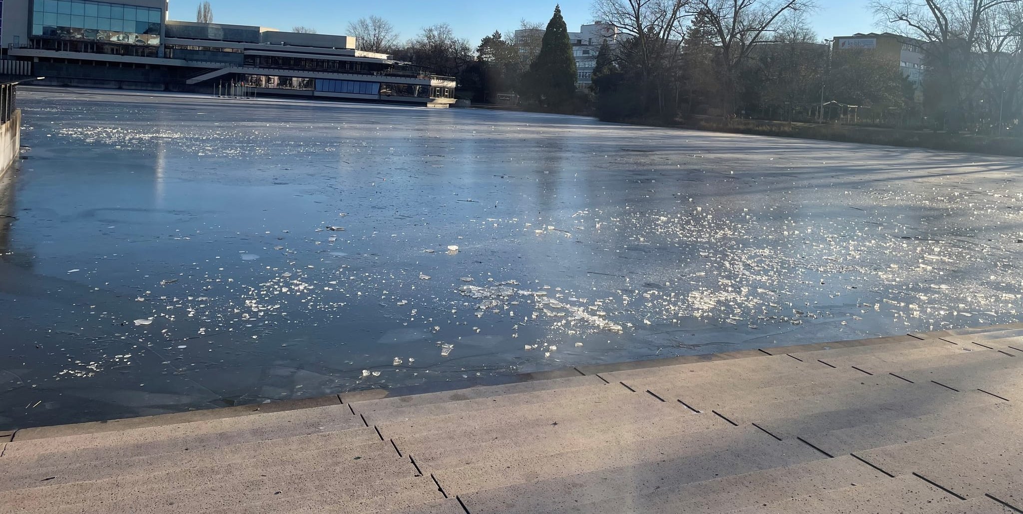 Jetzt allerdings gilt: Die Eisfläche darf nicht betreten werden, „es besteht Lebensgefahr“, betont der Sprecher der Stadt.