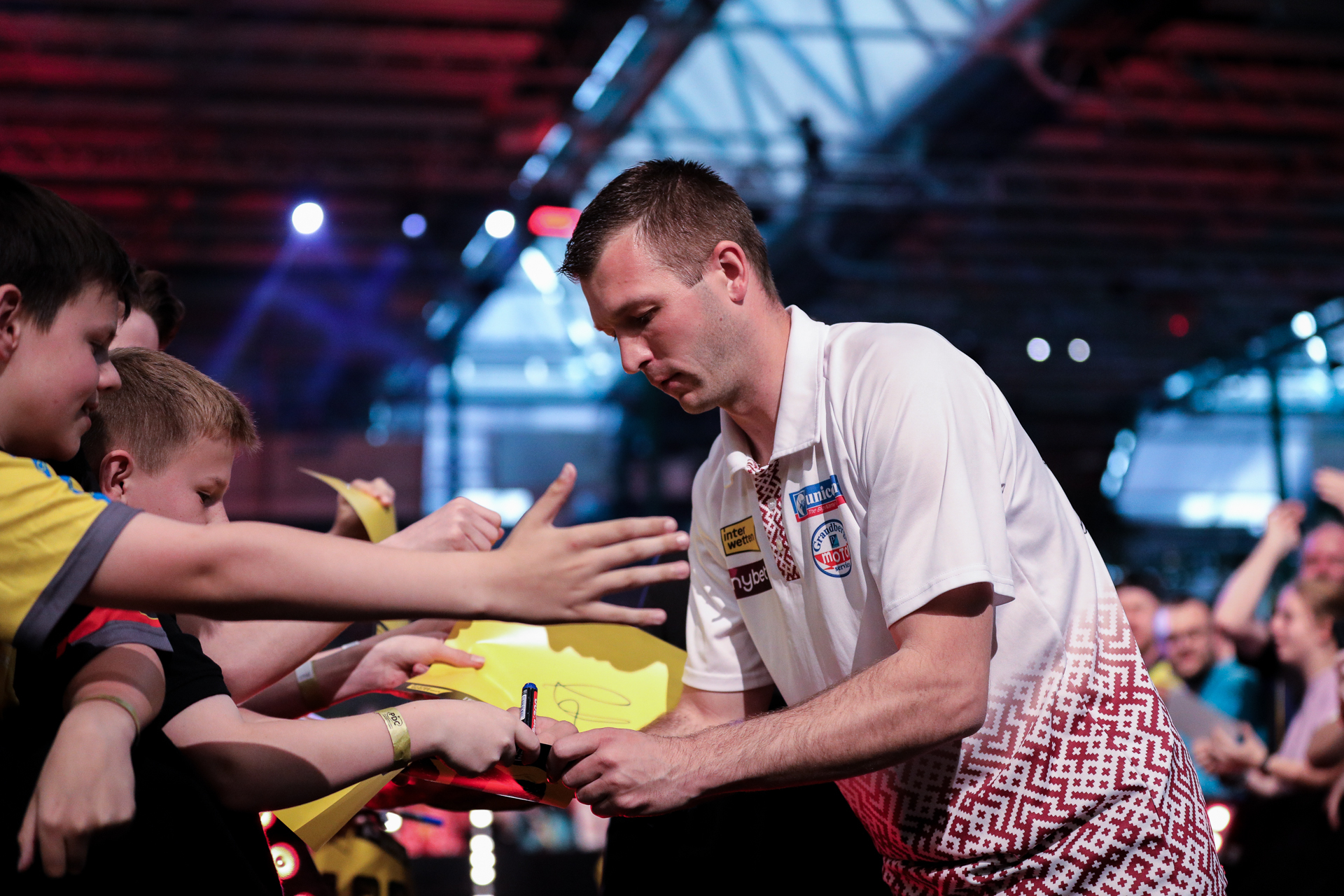 Darts. Was für eine Stimmung. Beim European Darts Grand Prix der ODC Europe wird der Sindelfinger Glaspalast zum Tollhaus. Zum Sportlichen: Auch wenn Deutschlands Überflieger Max Hopp sich dieses Mal nicht für die Turnierteilnahme qualifizieren konnte, ist er dennoch bei diesem Turnier dabei. Während des Matches Liam Maendl-Lawrance gegen Raymond van Barneveld wurde er gesichtet, was den Stellenwert des Sindelfinger Turniers unterstreicht. Ein paar Emotionen haben wir in Bildern eingefangen.
