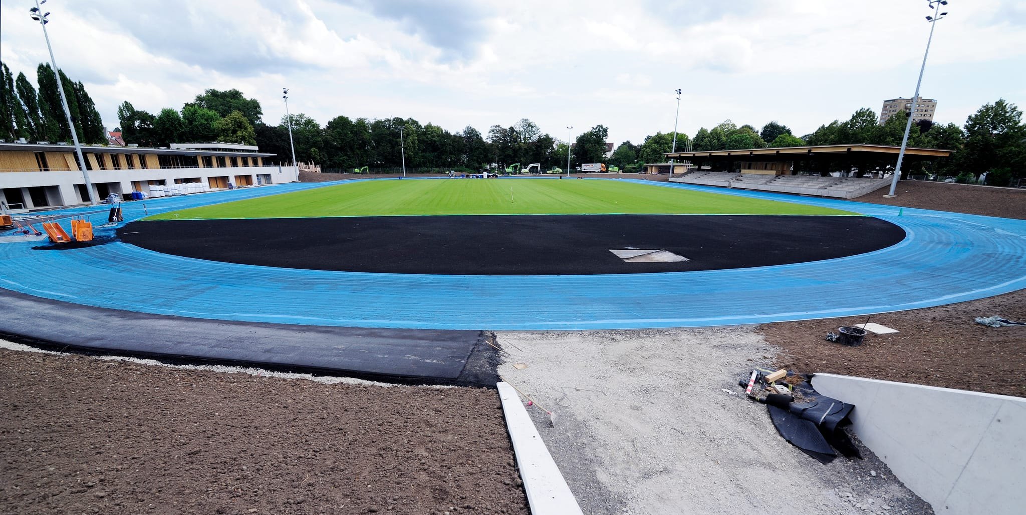 Sportpolitik. Am Mittwochabend noch hatte Präsident Dr. Heinrich Reidelbach bei der Delegiertenversammlung davon erzählt, wie sehr sich der VfL Sindelfingen auf das sanierte Floschenstadion und die blaue Rundbahn freut. Gute zwei Tage später sind die Bauarbeiten schon den entscheidenden Schritt weiter. Der blaue Kunststoff liegt, mit den weißen Markierungen sieht die Arena bald nicht nur blau, sie trägt dann auch die Vereinsfarben. Damit geht es beim Umbau des am 7. und 8. August 1954 mit Pauken und Trompeten eröffneten Stadions an die Detailarbeiten, bevor das Floschenstadion im September eingeweiht werden soll. Mit dem Abriss des alten Hauptgebäudes samt Umkleiden, Gaststätte und Kegelbahn hatte die Sanierung am 28. April 2022 begonnen.