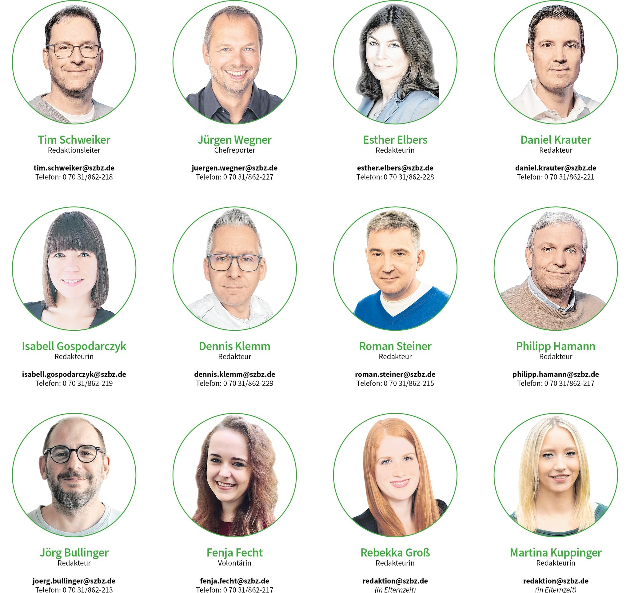 Senden Sie uns Ihre Vorschläge: Per E-Mail unter redaktion@szbz.de oder telefonisch unter 07031/862-217. Oder Sie melden sich direkt bei einer Redakteurin oder einem Redakteur.