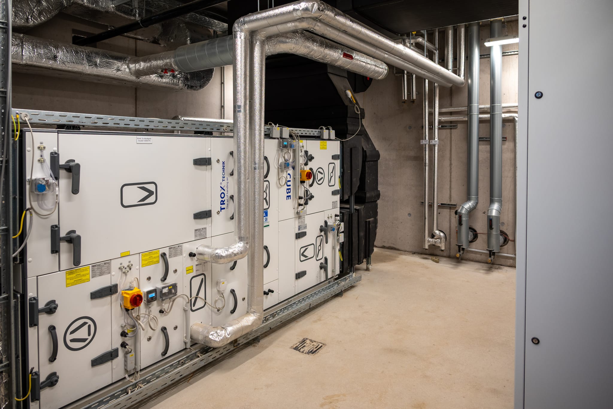 Die Lüftungszentrale sorgt gemeinsam mit der Heizungsanlage, bestehend aus einer Solaranlage und Fernwärme, für das richtige Klima im Gebäude.