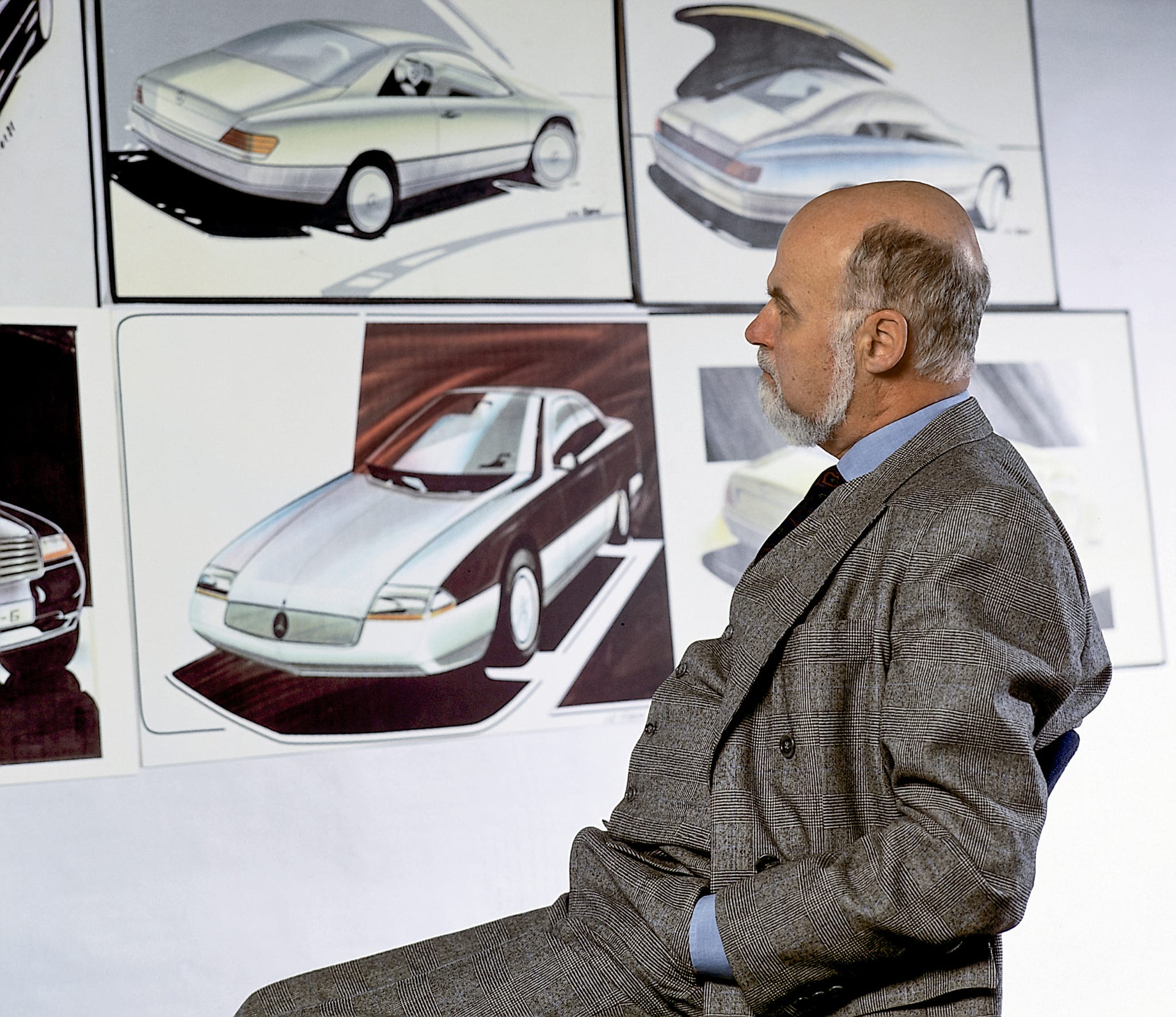Bruno Sacco vor Designentwürfen für ein Mercedes-Benz Coupé.