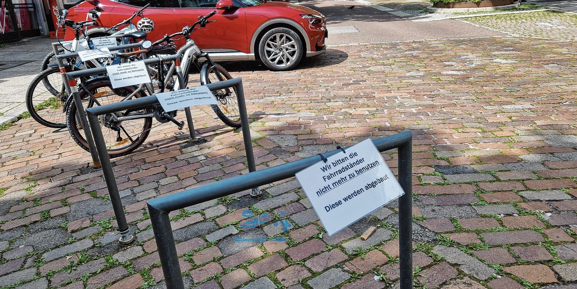 Zettel haben die Radfahrer vorgewarnt. Inzwischen wurden die Fahrradständer abgebaut.