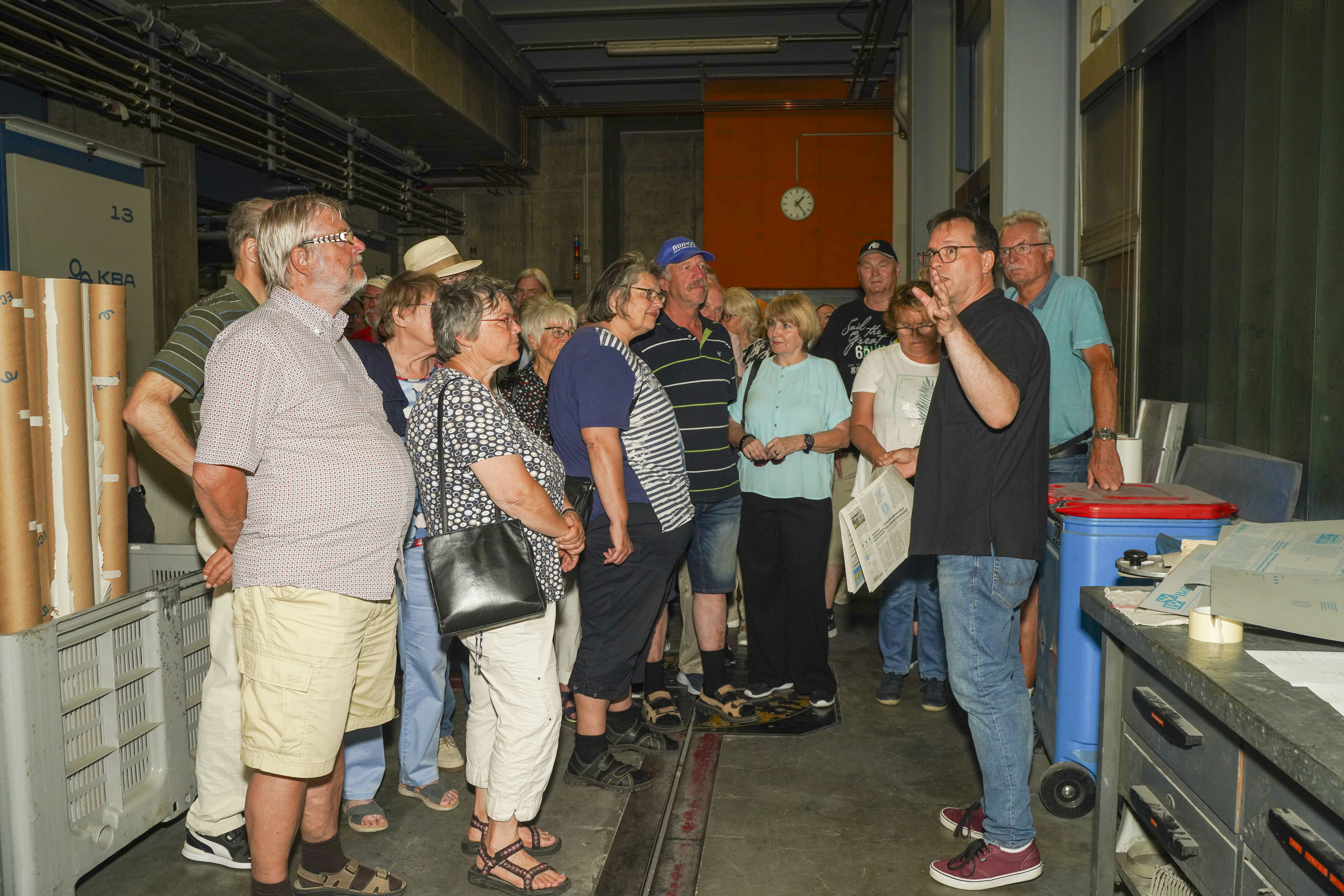 Die SZ/BZ selbst wird nachts ab etwa 23.30 Uhr gedruckt. „Das wollten wir unseren Lesern natürlich nicht zumuten“, so Redaktionsleiter Tim Schweiker, der im Wechsel mit Z-Druck-Geschäftsführer Peter Röhm gleich mehrere Besuchergruppen führte.