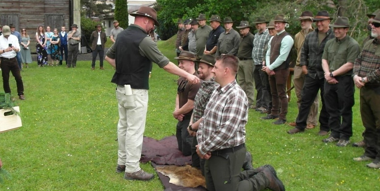 Mit dem traditionellen Jägerschlag hat Kreisjägermeister Timo Böckle auf dem Panzer Range Complex der Panzerkaserne deutsche und amerikanische Jagdprüfungs-Absolventen feierlich in die Reihen der Jägerschaft aufgenommen.