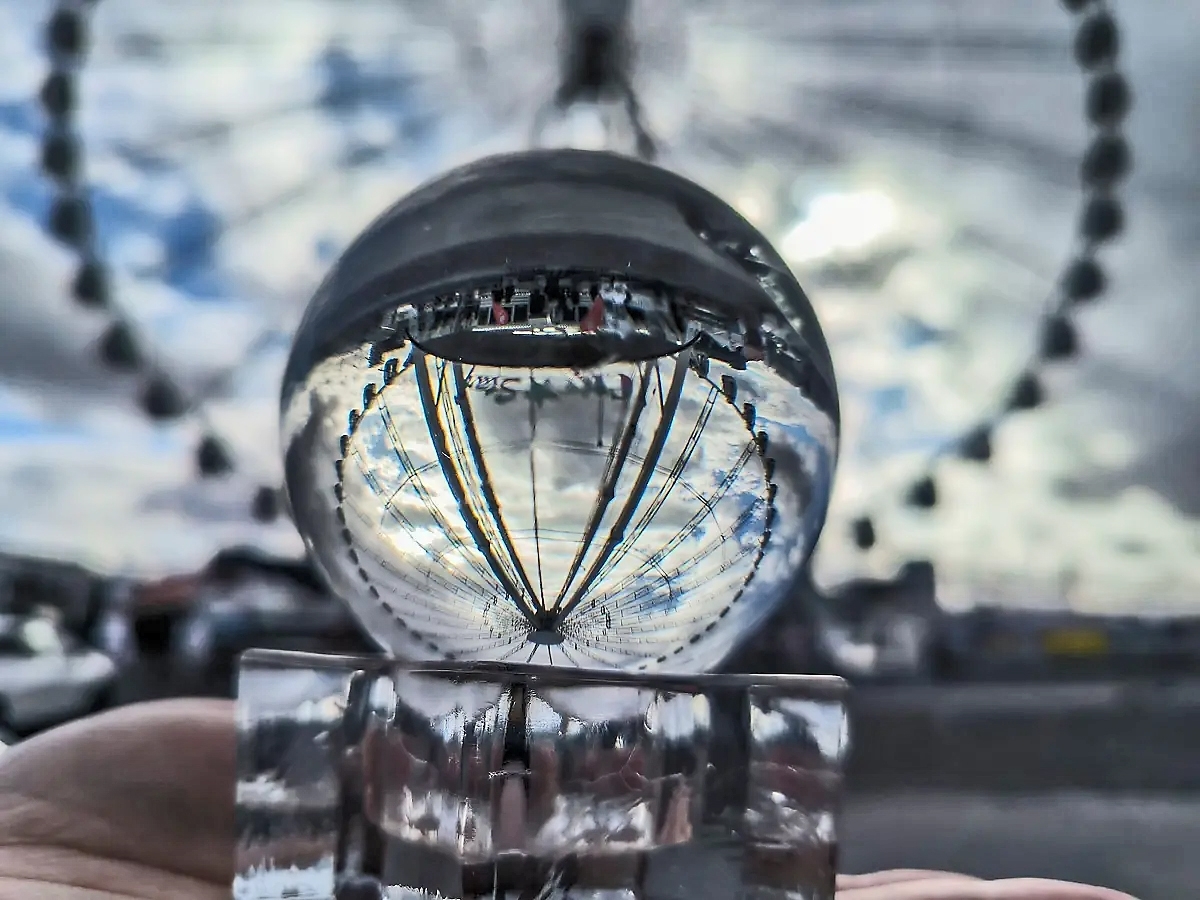 In die Glaskugel schauen? Unser Fotograf Frank Dettenmeyer kann das. Hier hat er im Sommer 2023 das Riesenrad auf dem Flugfeld entdeckt. Bild: Dettenmeyer