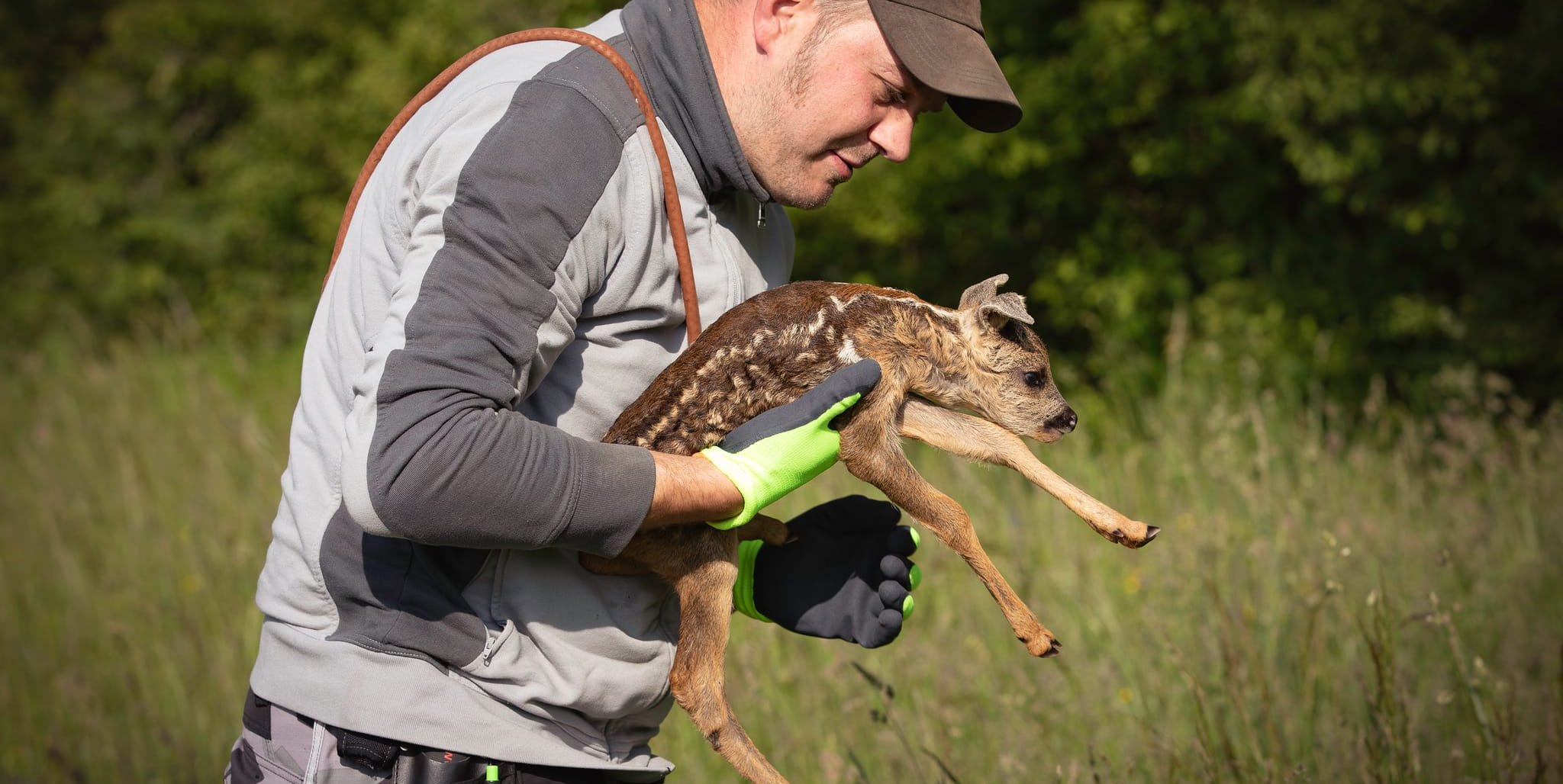 Landwirte können kostenlos ehrenamtliche Helfer der Kreisjägervereinigungen herbeirufen, die per Drohne mit Wärmebildkamera die Wiese zuvor abfliegen. So werden versteckte Rehkitze entdeckt und können in Sicherheit gebracht werden. Nach dem Mähen werden die Jungen von ihren Muttertieren wieder gefunden und angenommen.