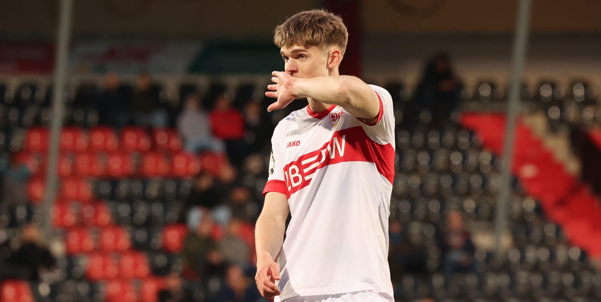 Leon Reichardt, hier noch im Trikot des VfB Stuttgart, hätte für Hansa Rostock fast sein erstes Tor geschossen. Bild: Baumann