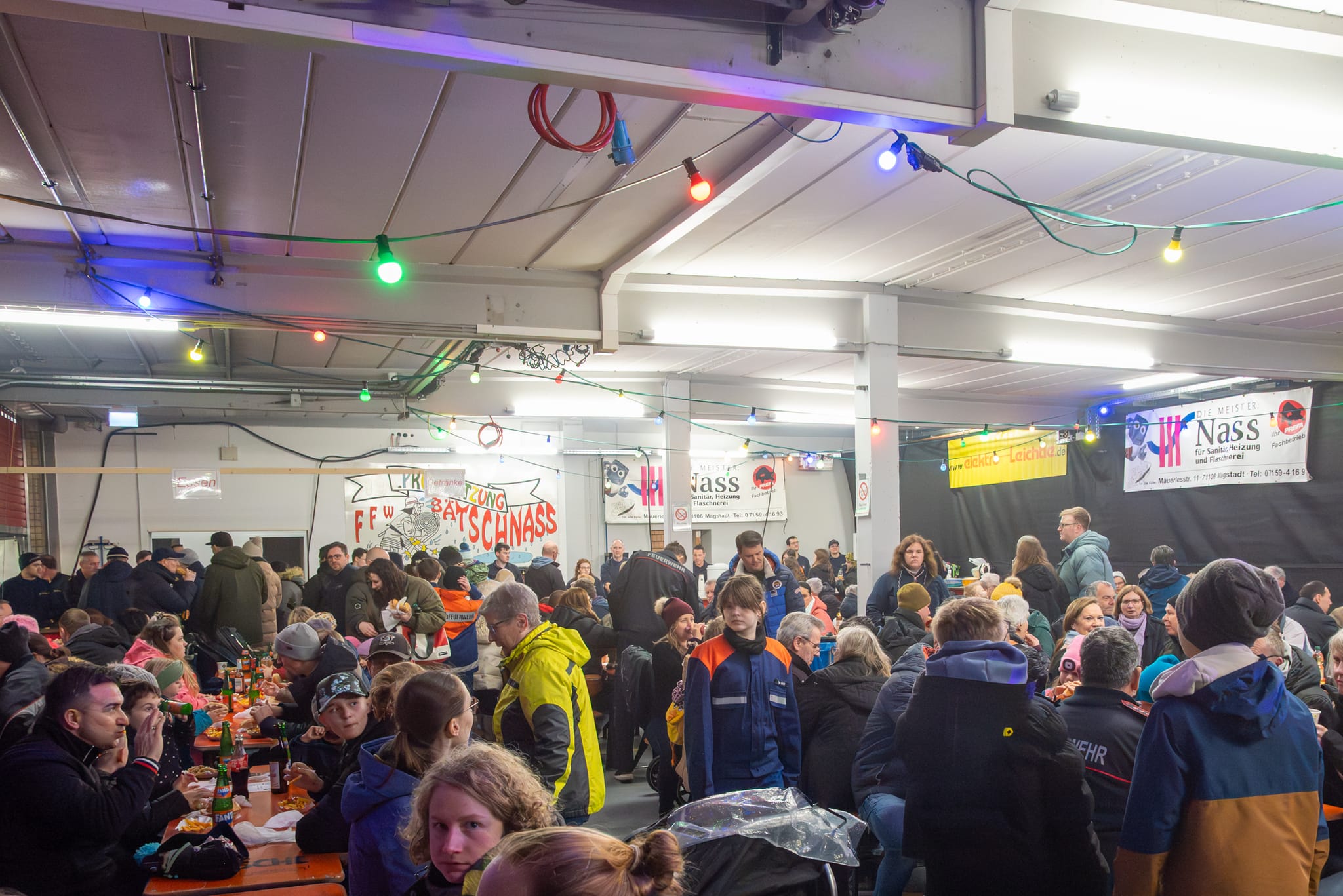 Umplanen war am Freitagnachmittag angesagt, denn beim Aufstellen des Funkenfeuers wurde klar: Ein Festbetrieb in unmittelbarer Nähe, wie sonst üblich, ist nicht möglich. Auf dem nassen, rutschigen Boden wäre es für die Besucher viel zu gefährlich gewesen. Schnell wurde das Feuerwehrgerätehaus leergeräumt und das Fest nach dem Anzünden ins Trockene verlegt.
