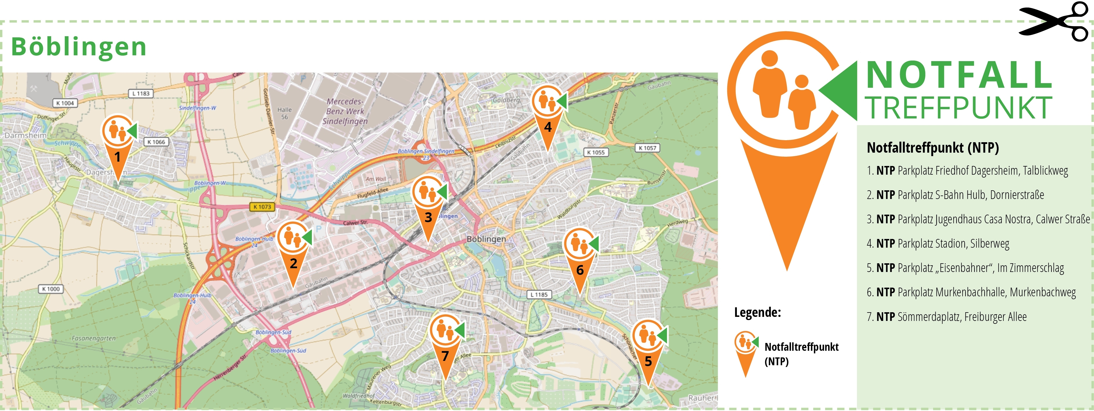 Böblingen. Die Stadt Böblingen hat ihre Notfalltreffpunkte festgelegt (Grafik: Teufel). An diesen wird eine Anlaufstelle für die Bevölkerung eingerichtet, sollte der Strom großflächig und über einen längeren ...