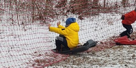 Familien und Kinder nutzen den verschneiten Hang am Sindelfinger Freibad für einen spontanen Winterausflug.