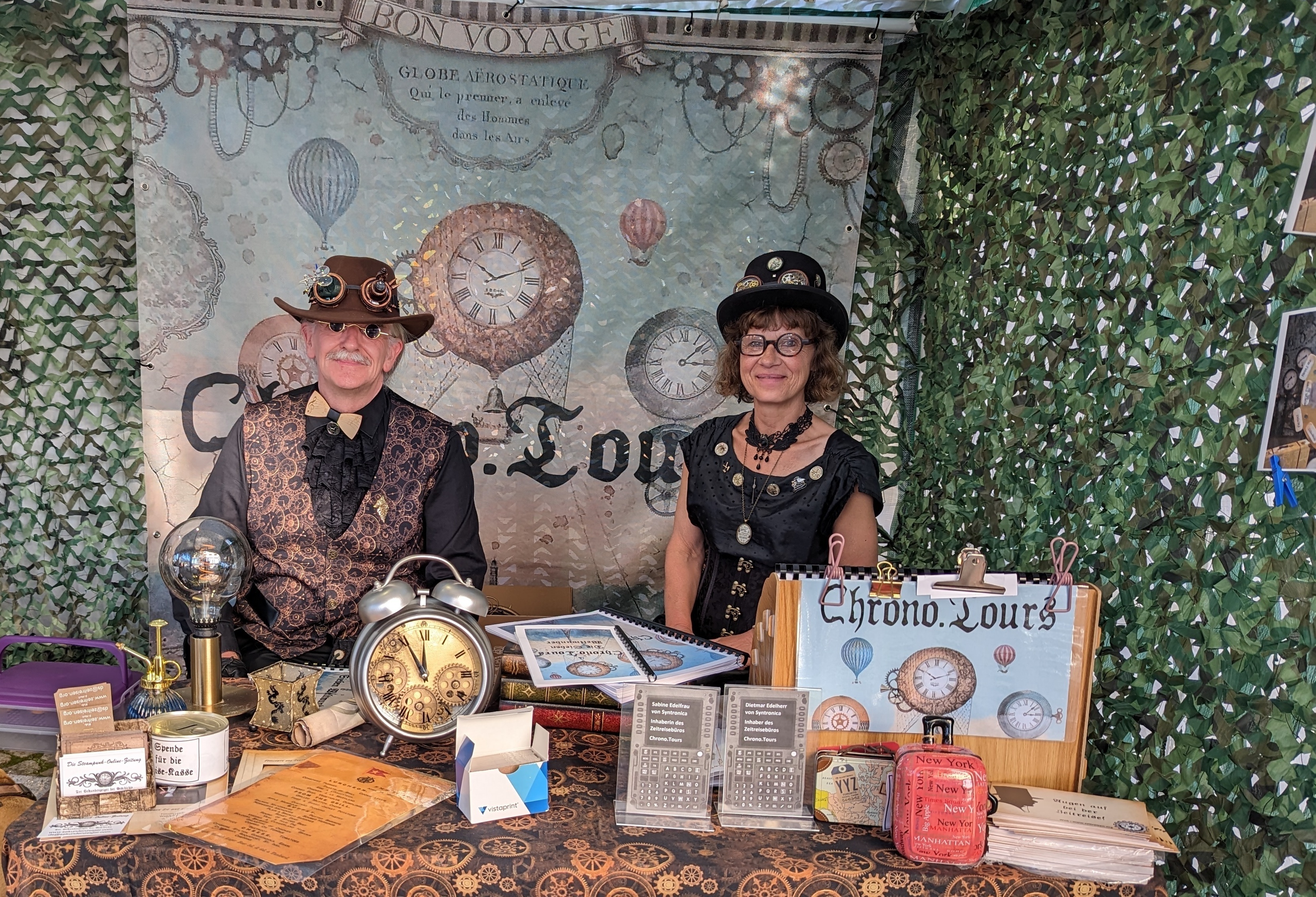 Dietmar Schneidewind und seine Frau Sabine in ihrem Zeitreisebüro. Bild: Nüßle