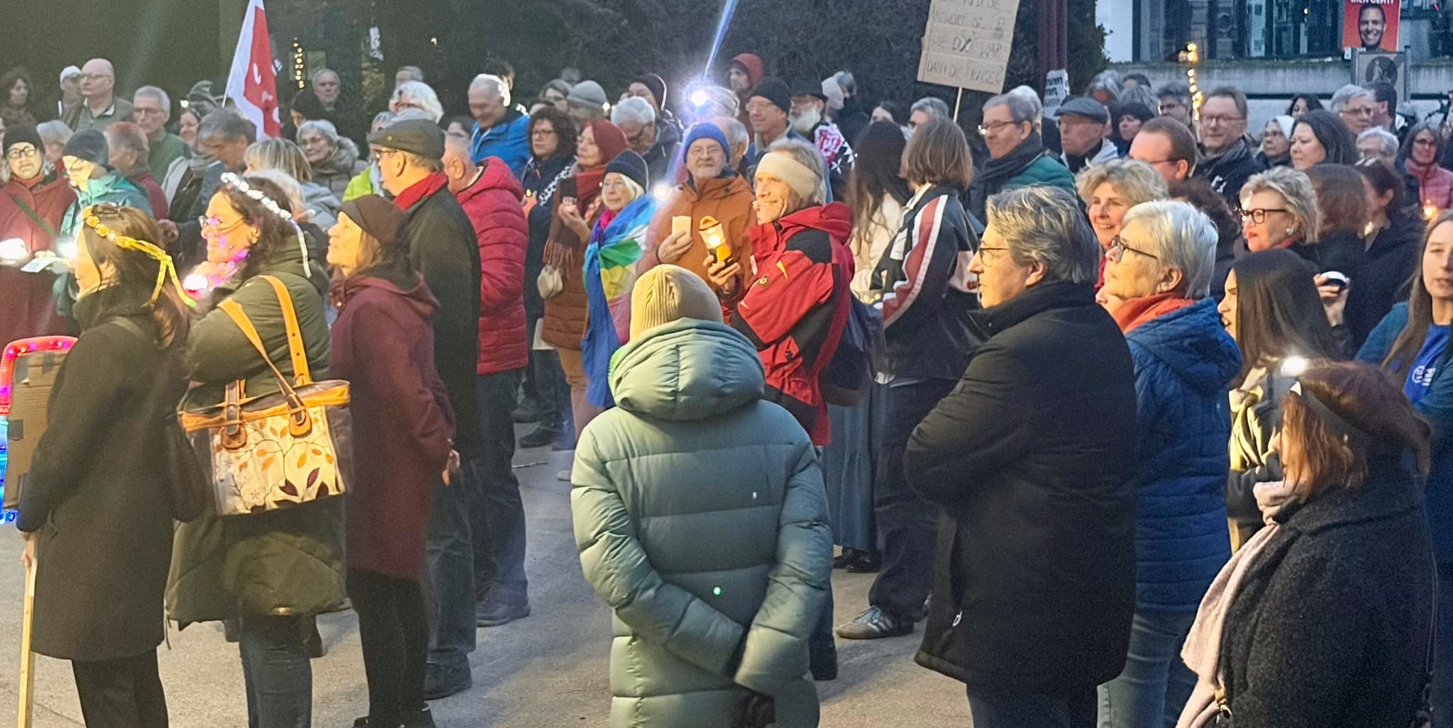 Sindelfingen. Die Omas gegen Rechts Sindelfingen/Böblingen und das Bündnis Buntes Sindelfingen hatten zu der Lichteraktion unter dem Motto „Licht an für Demokratie – Sindelfingen leuchtet“ aufgerufen. Etwa 150 bis 200 Teilnehmer, so die Schätzung von SPD-Stadtrat Axel Finkelnburg, haben am Samstag an der Aktion vordem Sindelfinger Rathaus teilgenommen.