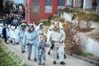 Neben der Sindelfinger Rathausmannschaft waren auch die Mitarbeiter aus der Maichinger Verwaltung allen voran Ortsvorsteher Wolfgang Stierle mit dabei. Als fleißige Bienchen und mit ihrem Imker Stierle protestierten sie gegen das Ergebnis zur Abschaffung der unechten Teilortswahl. „Ich hab mich sogar auf dem Oberbürgermeisterstuhl festgeklebt“, sagte Stierle, aber auch das hat nichts geholfen. Bild: Nüßle