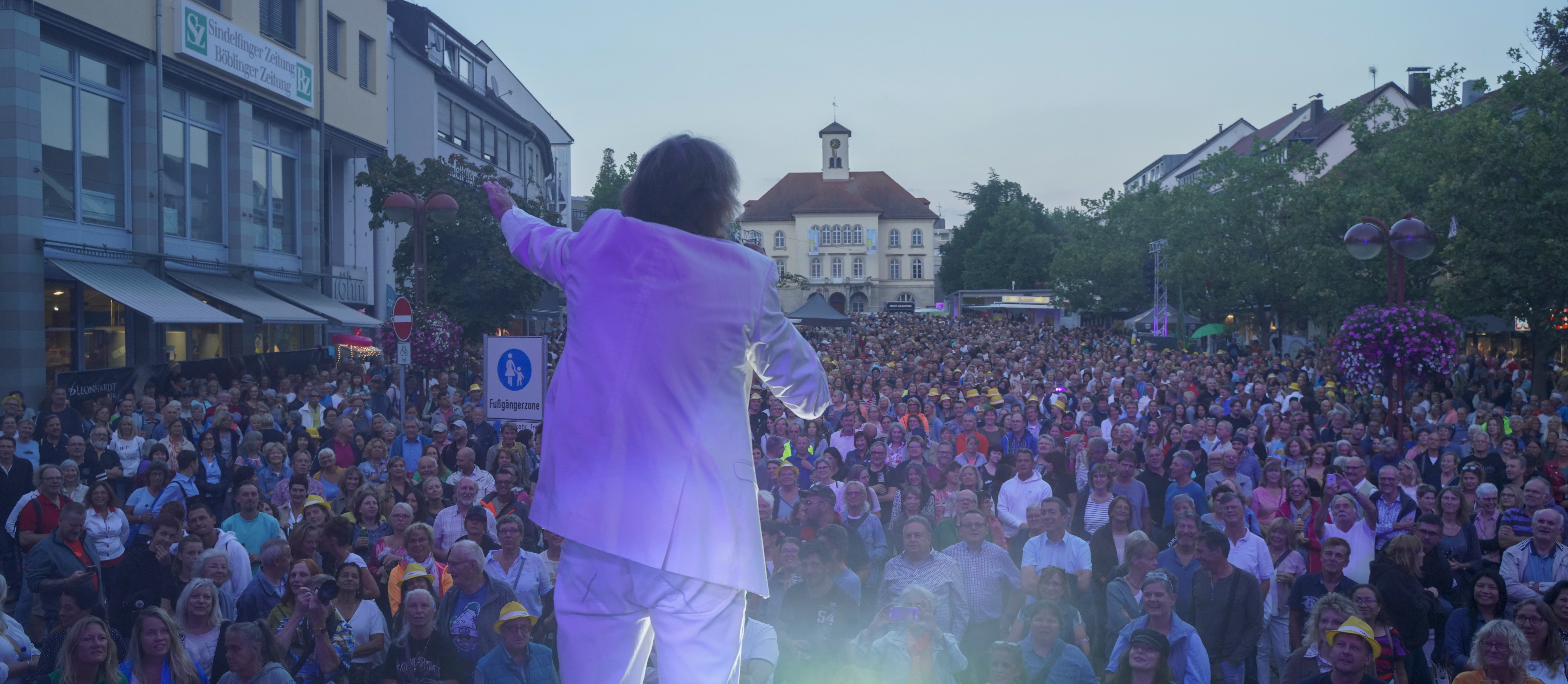 Früher war das anders, der Testballon steigt 2015. „Bigger Bang“ nennt sich die Band, die in Sindelfingen erst kleinere Steine und dann mächtige Brocken ins Rollen bringt. Gekonnt covern die Stuttgarter Jungs die Rolling Stones. Die Premiere von „Sindelfingen rockt“ gelingt, die Besucher lecken Blut. Mit jedem neuen Konzert ähnelt der Sindelfinger Marktplatz immer mehr einem Festival-Gelände Und als es nach den Krachern von Pink Floyd und AC/DC zum Abschluss von „TribU2“ die größten Hits von Bono und Co. gibt, ist der Stein längst im Rollen. Sind es einen runden Monat zuvor ein paar hundert Besucher, so strömen jetzt Tausende auf dem Marktplatz.