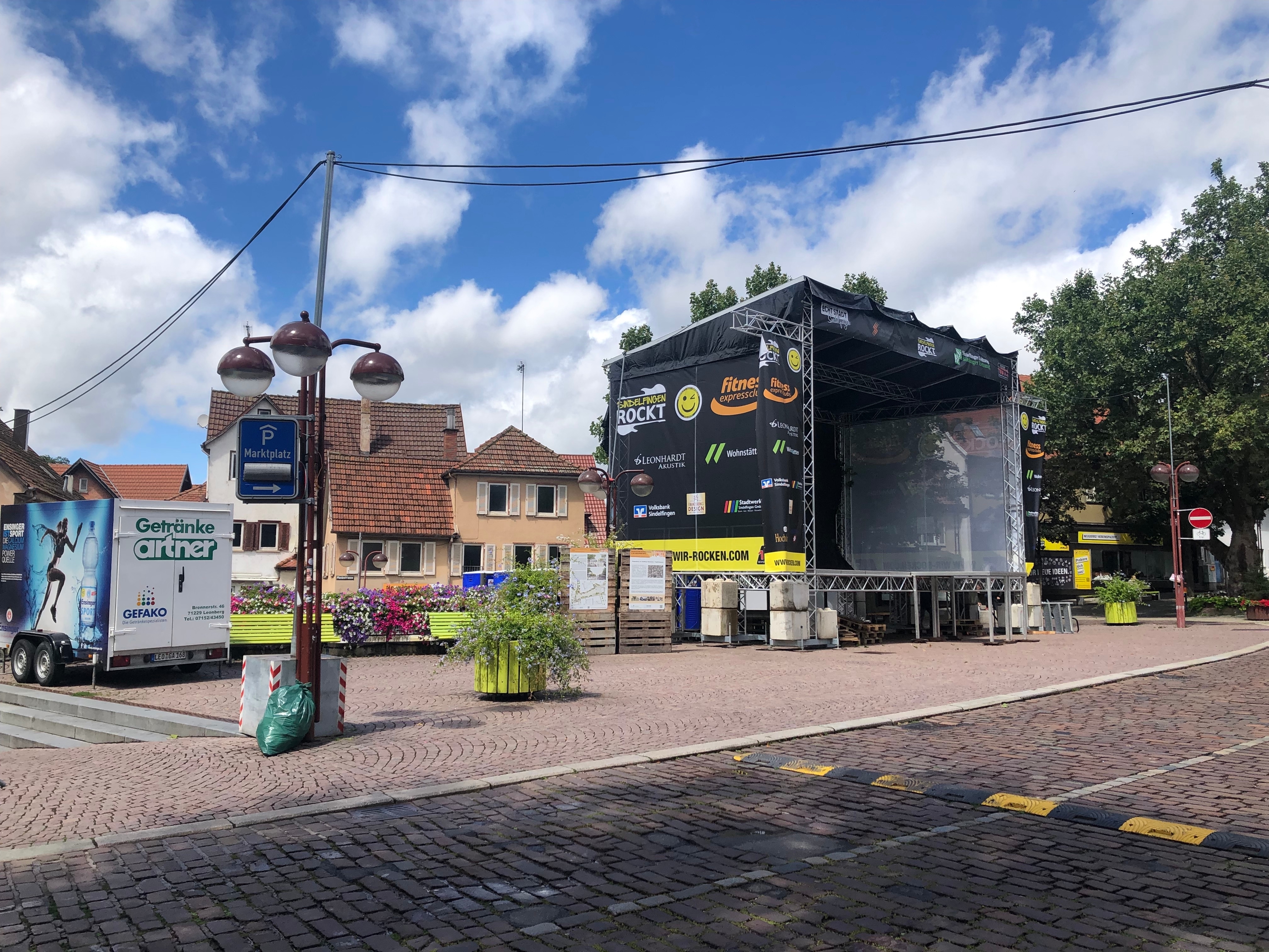 Am späten Mittwochvormittag karrt der Laster aus Kornwestheim die Technik der Robbie-Williams-Tribute-Band „Feel“an. Ab 18 Uhr geht es los, die Musik spielt etwa ab 18.30 Uhr bis 22 Uhr in drei Sets mit zwei Pausen.