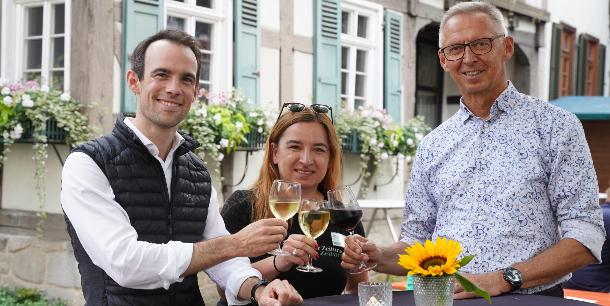Verleger Dr. Christian Röhm stößt zur Eröffnung mit Sindelfingens Erstem Bürgermeister Christian Gangl an und erklärt, warum es das neue Veranstaltungsformat gibt: „Weil wir lieben, hier zu leben. Was gibt es Schöneres, als ein Glas Wein mit Freunden in unserer wunderschönen Sindelfinger Fachwerk-Altstadt zu genießen? Wir Sindelfinger schätzen unsere Innenstadtfeste sehr, man denke nur an das Straßenfest, Sindelfingen rockt oder den Feuerabend. Mit den Weintagen schaffen wir einen neuen Treffpunkt, der hoffentlich bald ebenso etabliert sein wird. Mit schwäbischen, italienischen, türkischen, portugiesischen Weinen und vielen mehr ist das Angebot genauso vielseitig wie Sindelfingen. Ich freue mich sehr darauf.“