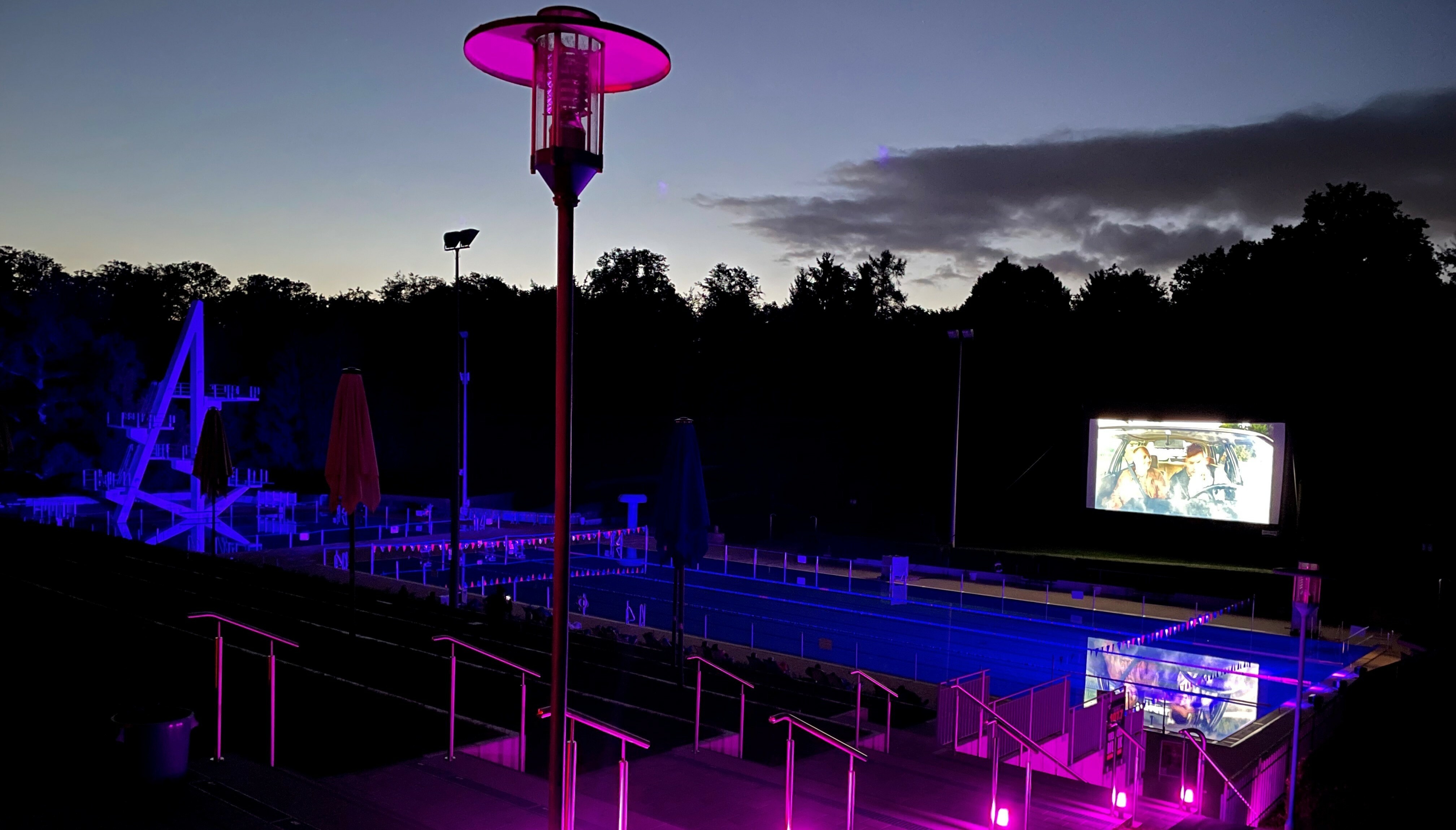 Sindelfingen. Ab dem 15. Juli wird das Sindelfinger Freibad wieder zum Open-Air-Kino. Die Premiere hatte es 2021 gegeben, nachdem die Tribüne am Schwimmerbecken saniert war. Dort haben an Kinoabenden bis zu 1000 Besucher Platz. Die Kinotechnik liefert die Firma "2 Oscars" aus Ludwigsburg unterstützt vom Radiosender "Die neue 107.7". "Dabei wird an den Abenden das Freibad besonders in Szene gesetzt", sagt Sportamtsleiter Christian Keipert. Die Nürtinger Lichtdesigner Magiclight leuchten das Freibadgelände und den Sprungturm aus.