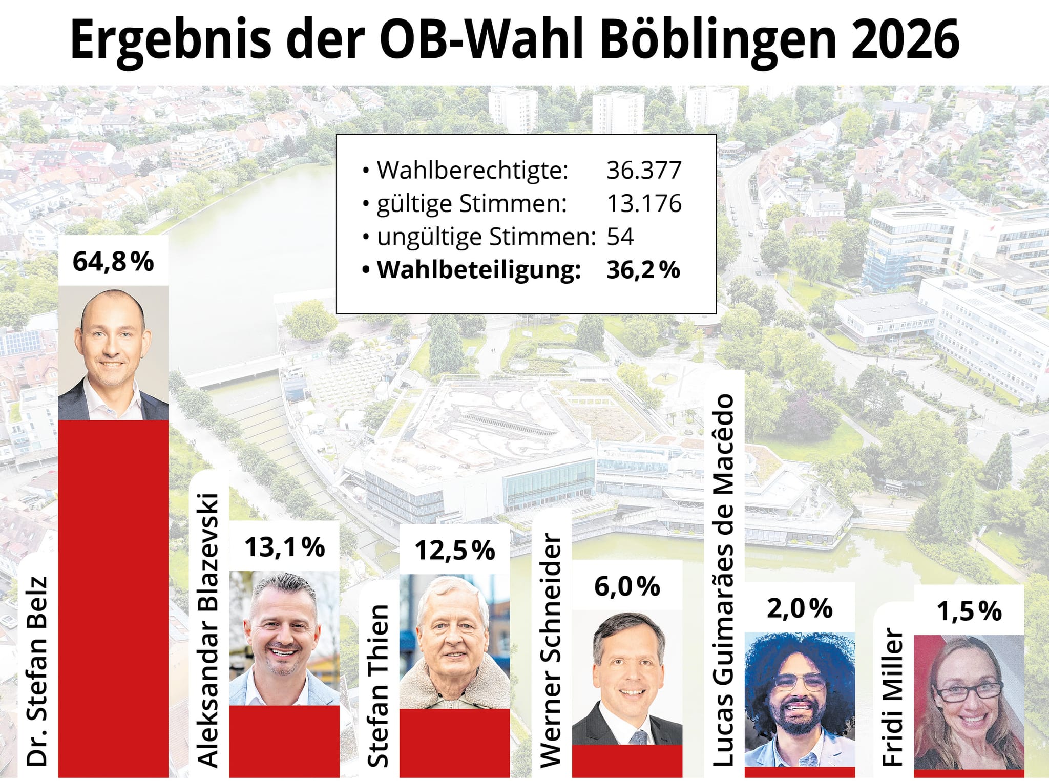 Böblingen. Stefan Belz bleibt Oberbürgermeister der Stadt Böblingen. Bei der Wahl erhält er 64,8 Prozent der Stimmen und setzt sich damit erneut durch. "Ich freue mich über das klare und deutliche Ergebnis", sagt er.