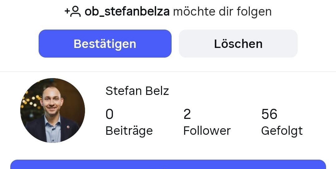 Das hier ist ein Fake-Profil. Unter anderem könnte stutzig machen, dass es hier null Beiträge gibt und nur zwei Personen gibt, die dem vermeintlichen Profil des Böblinger Oberbürgermeisters folgen.