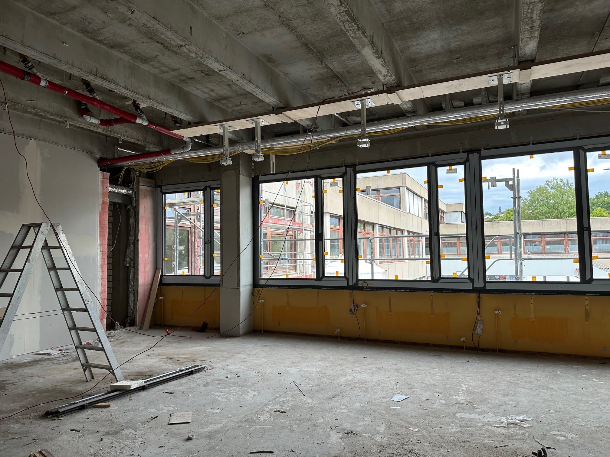 Darüber hinaus wird die rund 100 Meter lange Trinkwasserhauptleitung sowie der Trinkwasserverteiler erneuert – eine Maßnahme zur Verbesserung der Trinkwasserhygiene. Ergänzt wird dies durch die Installation einer automatischen Druckhalte- und Entgasungsstation für das Heizungsnetz. Ein weiterer wichtiger Schritt: Die laufenden Brandschutzmaßnahmen am OHG werden abgeschlossen.