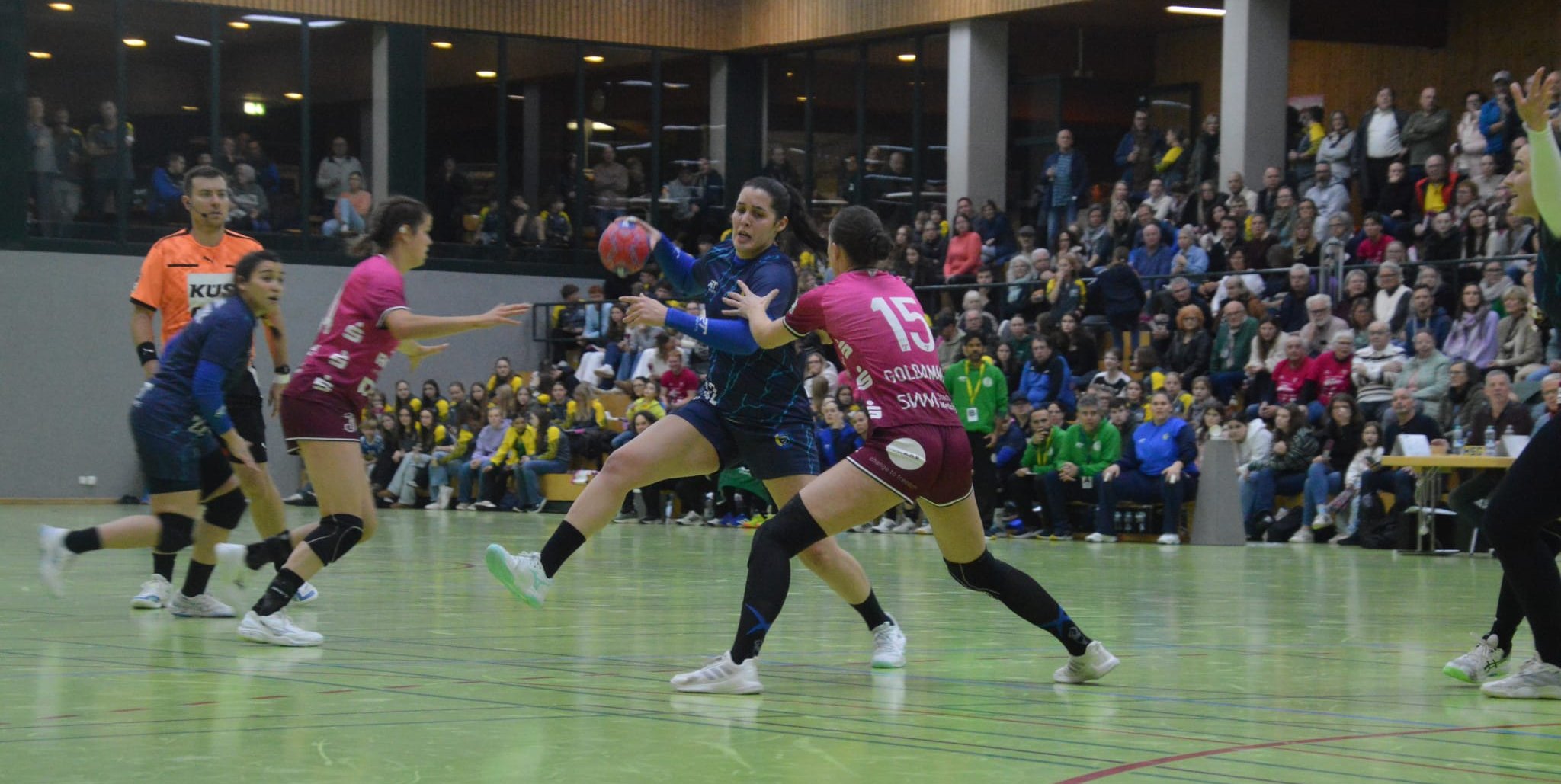 Die Brasilianerinnen (blaue Trikots) zeigten sich gegen TuS Metzingen in guter Form.  Vom Hotel Gärtner hatten sie auch nur eine kurze Anfahrt in die Schönbuchhalle.  Bild: Zvizdiç