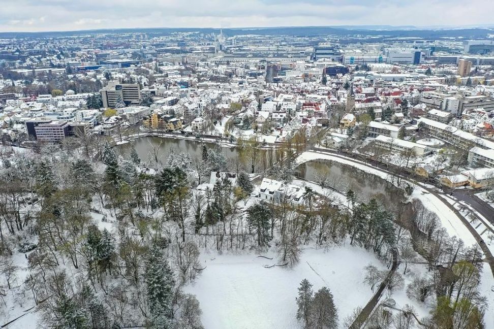 Der verschneite Sommerhofenpark in Sindelfingen.