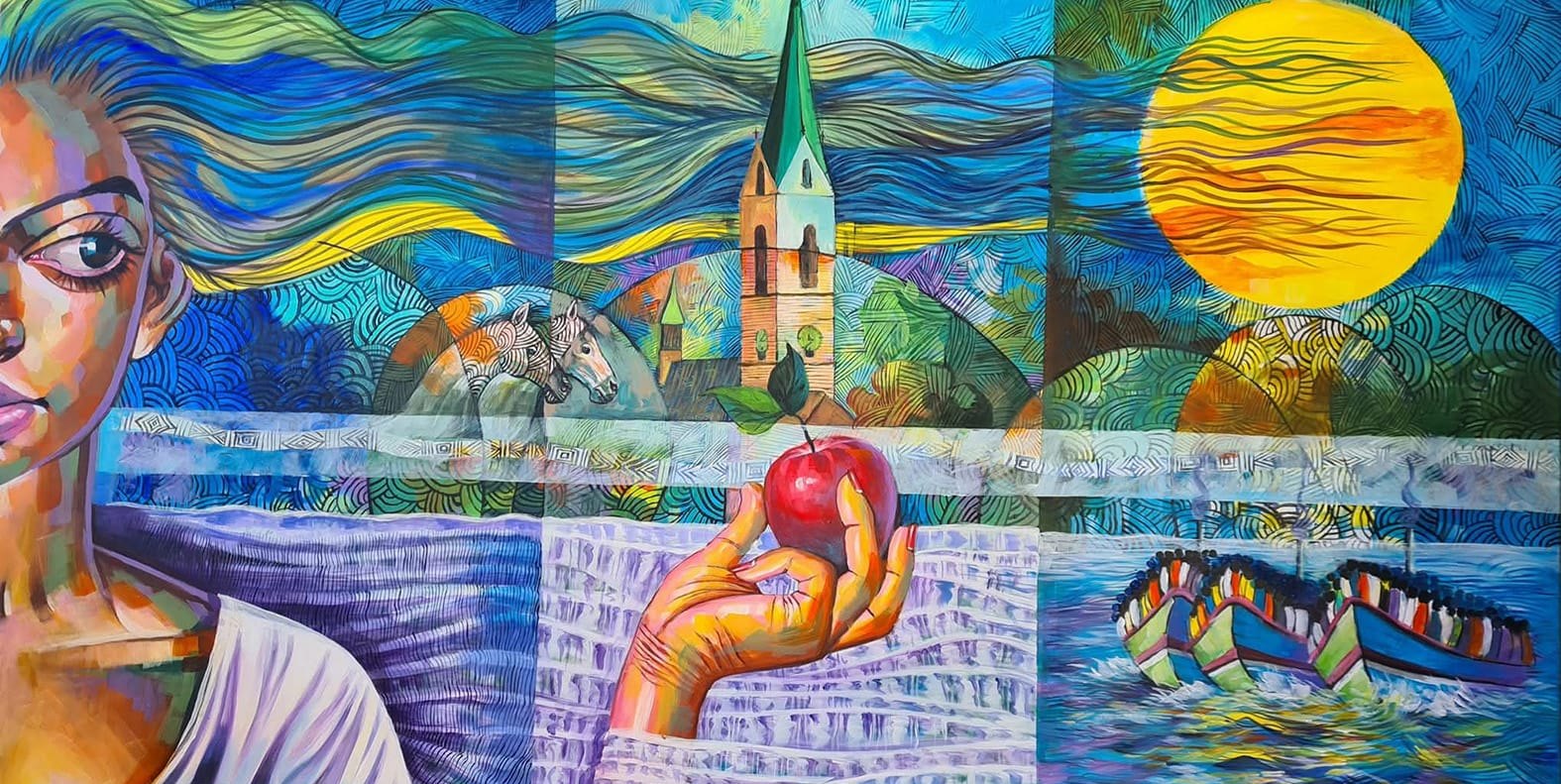 Im Böblinger Dekanatshaus D12 am Bonifatiusplatz sind Gemälde von Mulugeta Tekle aus Eritrea zu sehen. Im Jahr 2015 floh er übers Mittelmeer aus seiner Heimat nach Europa. Angekommen ist er inzwischen in Balingen und belebt die schwäbische Kunstszene: Unter dem Titel „Flucht“ stellt Mulugeta Tekle vom 9. bis 20. November seine farbenfrohen Werke aus. Die Vernissage mit einem Impulsvortrag der Böblinger Kunsthistorikerin Dr. Daniela Kaiser ist am Sonntag, 9. November, um 16 Uhr. Di, Mi + Do 9 - 16 Uhr, Fr 9 - 12 Uhr. Zudem sind die Werke in der „Langen Nacht der Museen“ am Samstag, 15. November, von 18 bis 22 Uhr zu sehen. Beim Sonntagsessen der Vesperkirche am Sonntag, 16. November, nach dem Gottesdienst in St. Bonifatius wird Mulugeta Tekle ab 12.30 Uhr im Gemeindehaus anwesend sein und die Gäste in seine Bilder- und Gedankenwelt mitnehmen und auch für Fragen zur Verfügung stehen.