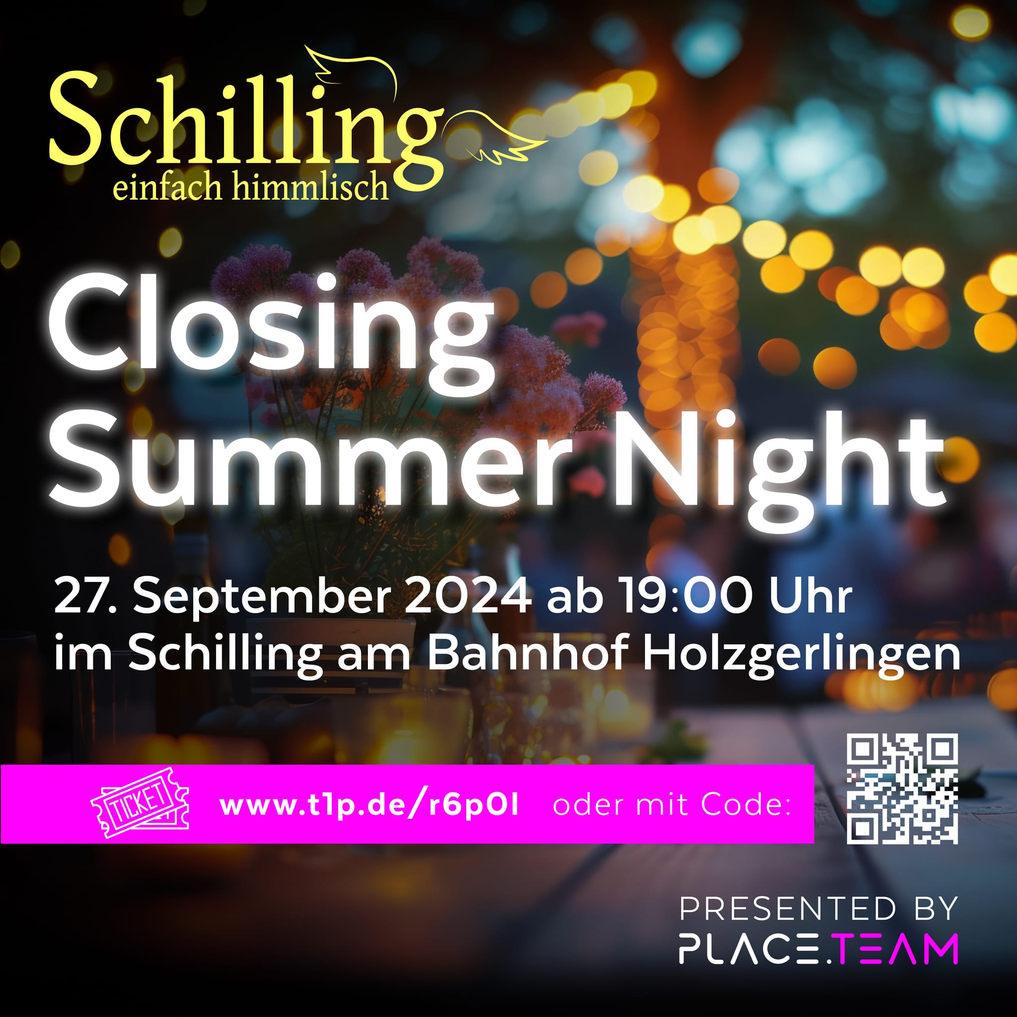 Bei der Closing Summer Night im Schilling am Bahnhof in Holzgerlingen gibt es am Freitag „lockere Vibes, coole Drinks, Cocktails, chillige Lichtinszenierungen in einer sommerlichen Atmosphäre“. Beginnend im Außenbereich ab 19 Uhr, bevor es in den Innenbereich übergeht und die Partynacht ab 23 Uhr durchstartet. Musik mit DJ Chico Enrico: 2000er, Ibiza Beats, House, Reggaeton & Latino Beats, 80/90s. Karten unter www.eventim-light.com