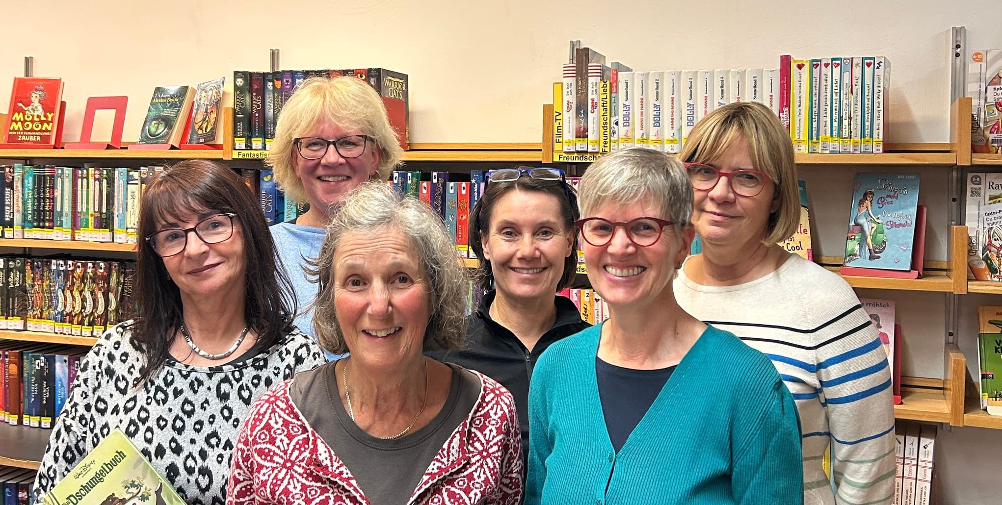 Das Team der Bücherei Eichholz freut sich auf Besuch in der Theodor-Heuss-Straße 90. Auf unserem Foto: Vorne:Ina Schuler, Isabell Gissing-Sojka, Zweite Reihe: Susanne Blum, Karola Wunderlich, Petra Mauberger und Corry Jakschik.