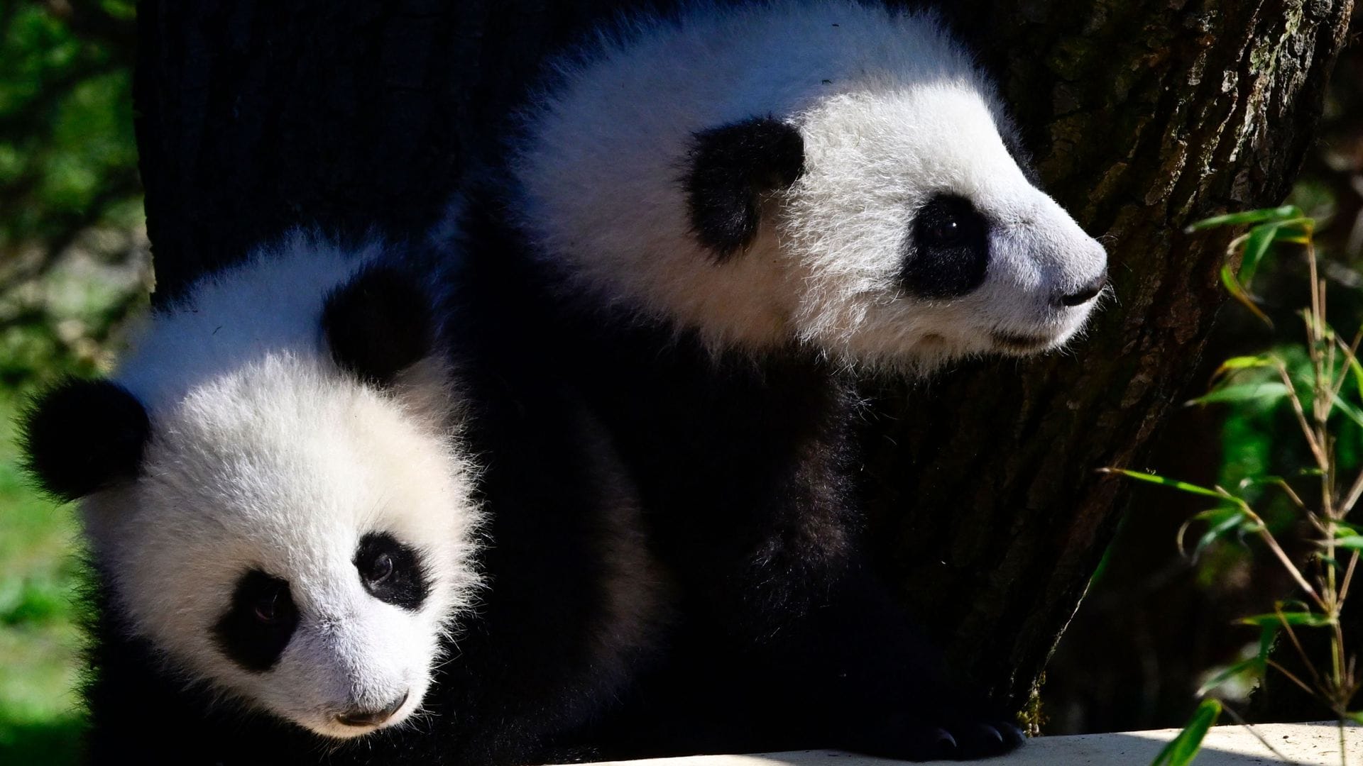 Panda-Zwillinge wagen erste Kletterversuche