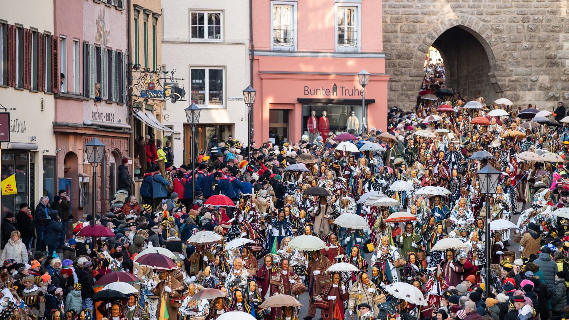 Narrensprung am Rosenmontag bei der schwäbisch-alemannischen Fasnet in Rottweil.